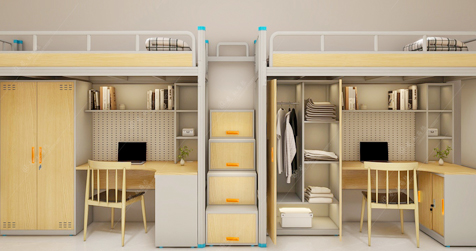 - Customized student apartment bed, underbed, table, two-piece staircase style