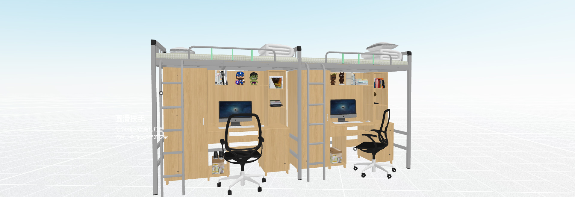 - Three people climb the ladder to go up the bed, go down the table, and make the student bed up and down